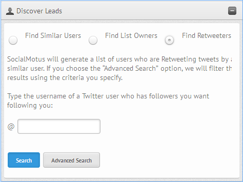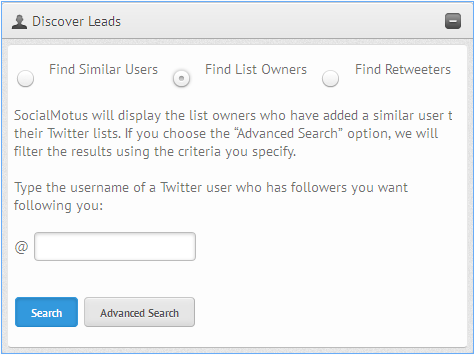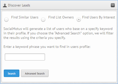 With each leads discovery tool, you can access our advanced filters. These filters not only ensure only legitimate Twitter accounts are displayed in the results, it allows you to refine the type of user appearing in the results. More specifically, you can specify what keywords their profile description or Twitter list must contain.
